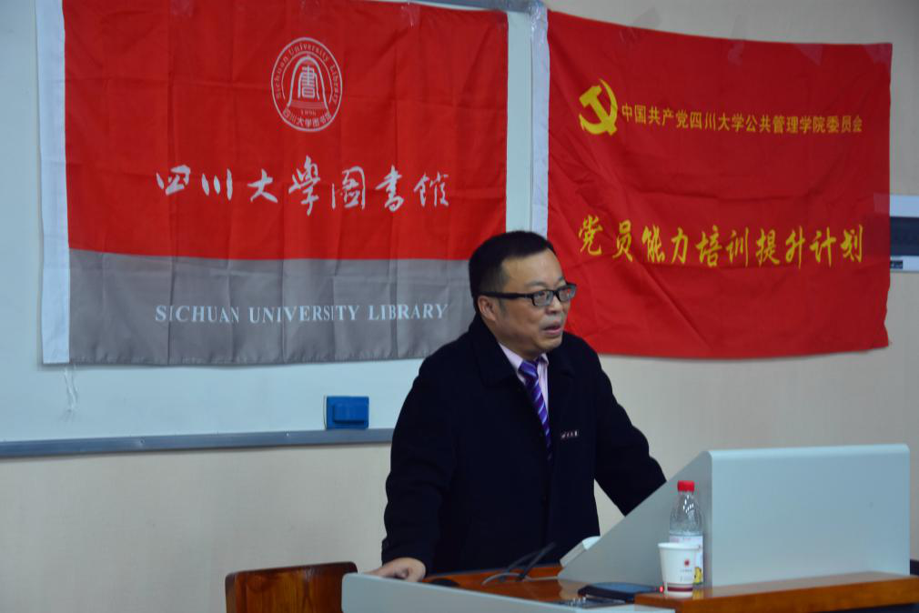 2018年11月23日下午,作为太阳集团tyc9728第二期党员能力提升计划第三次课程,学生党员“历史视野提升”讲座在望江东二教306教室成功举办。本次讲座特邀主讲嘉宾为教育部高等学校图书馆学学科教学指导委员会委员、四川省科学技术与学术带头人后备人选、ok138cn太阳集团图书馆馆长党跃武教授,太阳集团tyc97282018级本科辅导员刘晓燕老师主持了本次活动。来自太阳集团tyc9728的一百余名学生党员及学校图书馆部分教职工党员同志共同参加了本次讲座。