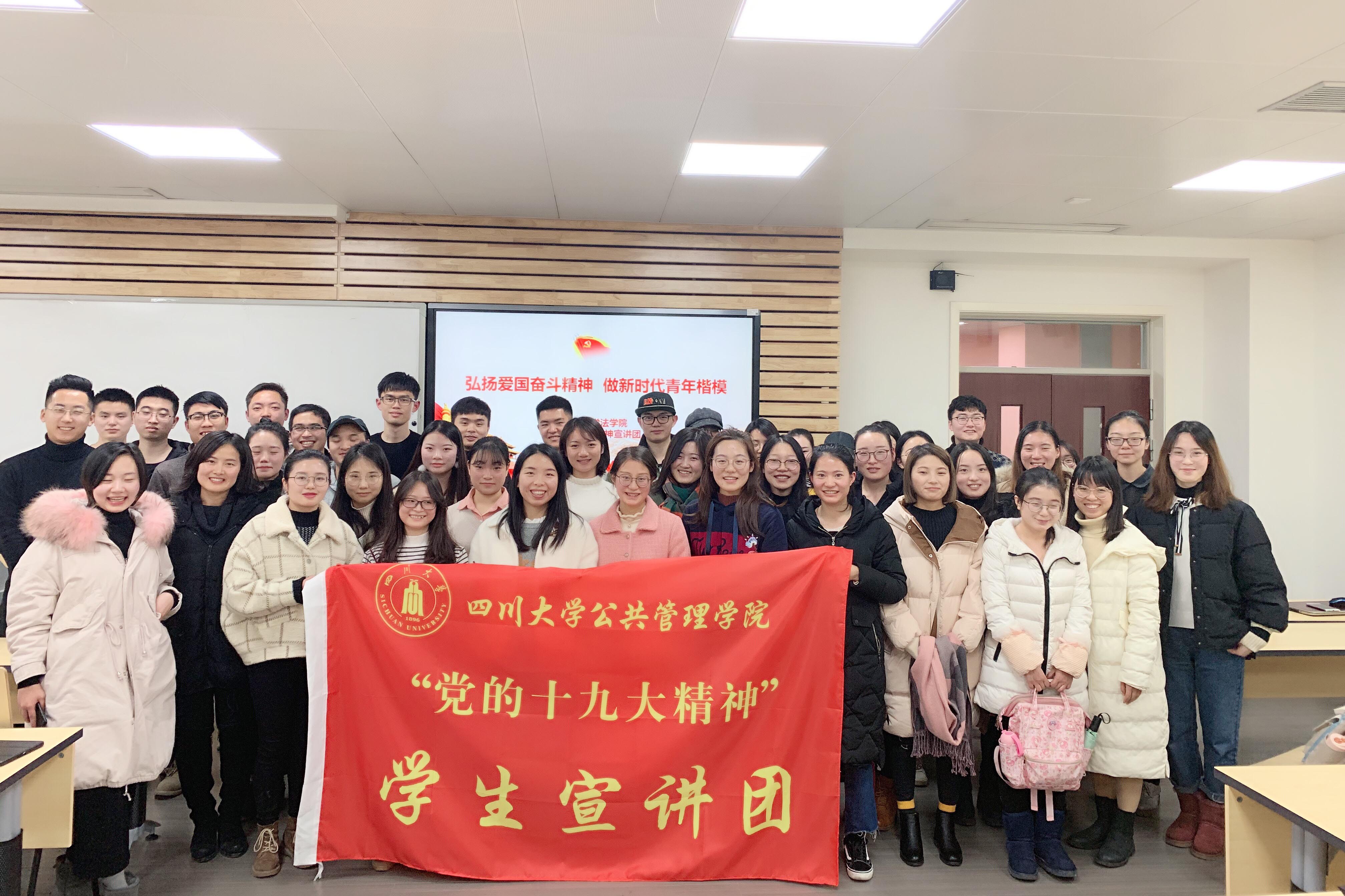 为持续推动学习宣传贯彻党的十九大精神热潮,鼓舞同学们深刻领会报告的丰富内涵,把思想和行动统一到党的十九大精神上来,12月12日,太阳集团tyc97282017级研究生党支部、学院“党的十九大精神”学生宣讲团在望江校区基础教学楼A座408教室联合法学院举办了“弘扬爱国奋斗精神,做新时代青年楷模”的主题宣讲会。2017级研究生第二、第四支部全体党员、法学院部分研究生党员参加了此次活动。2017级研究生第四支部书记青杨媚老师出席活动并讲话。