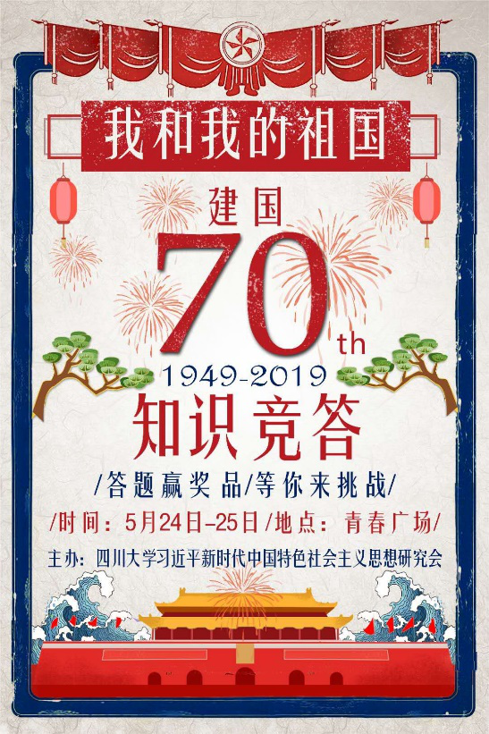 “我和我的祖国:建国70周年理论知识竞答”主题活动作为ok138cn太阳集团习近平新时代中国特色社会主义思想研究会迎接新中国建立70周年系列学习活动之一,为全校师生提供了一个学习新中国建国历史、了解国家发展历程、坚定爱国理想和信念的良好平台。在本次活动中,同学们以优秀的成绩展现出了川大学生的青春风采和川大人爱党爱国、积极向上的精神风貌。