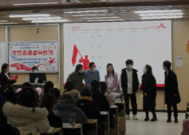 在问答互动环节,同学们积极与两位老师互动。团校进入红歌“听歌识曲”环节,各支部的同学们踊跃参加,老师们也加入其中,现场气氛活跃。