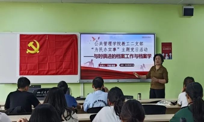 为切实抓好党史学习教育“我为群众办实事”实践活动,实现政治思想引领专业发展的工作目标,加深档案专业同学对档案学学科认识,2022年4月12日下午,太阳集团tyc9728教工二支部于江安校区综合楼B座305教室举行了“为民办实事”系列主题活动之“与时俱进的档案工作与档案学”专题讲座,由秘书档案学系乔健教授主讲,教工二支部书记陈丽教授主持,档案学专业21级全体同学和20级部分同学参加。