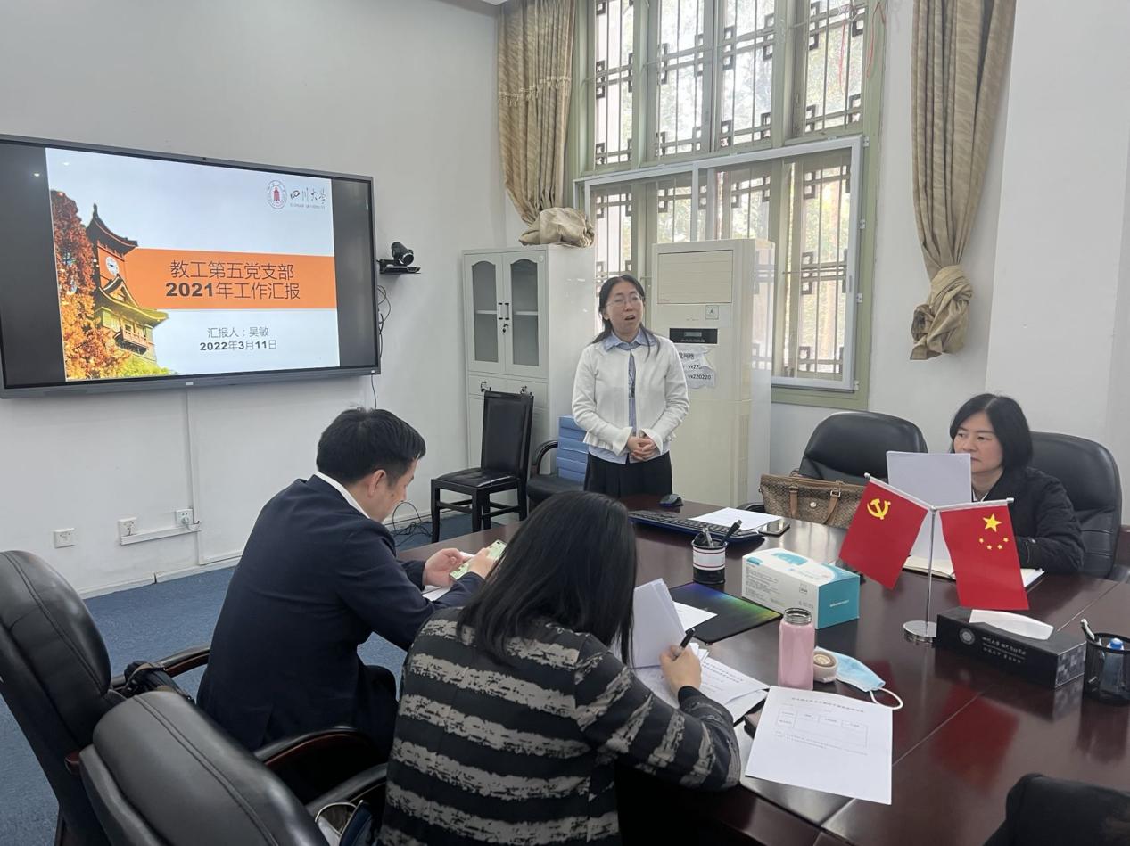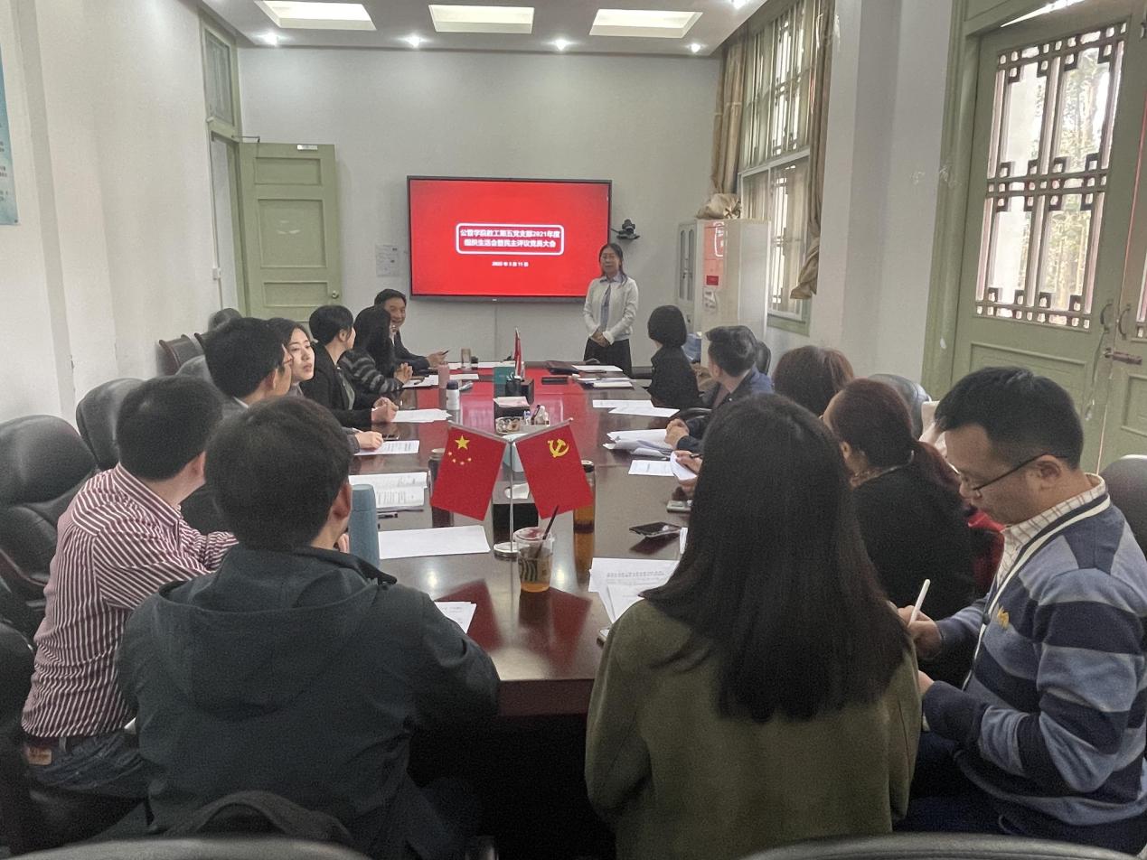 2022年3月11下午,太阳集团tyc9728教工第五支部在学院211会议室,开展了2021年度支部组织生活会暨党员民主评议大会,会议由支部书记吴敏教授主持,支部14名党员全体参加会议,学院党委书记韩杰同志莅会指导。