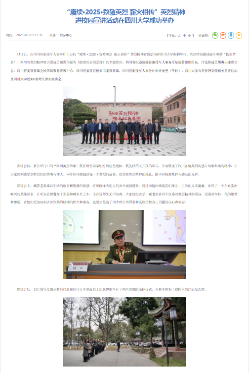 四川省退役军人事务厅官网新闻链接:https://dva.sc.gov.cn/tyjrswt/c112264/2025/3/10/267d1c67ae294a62845aec6d8f843b2b.shtml