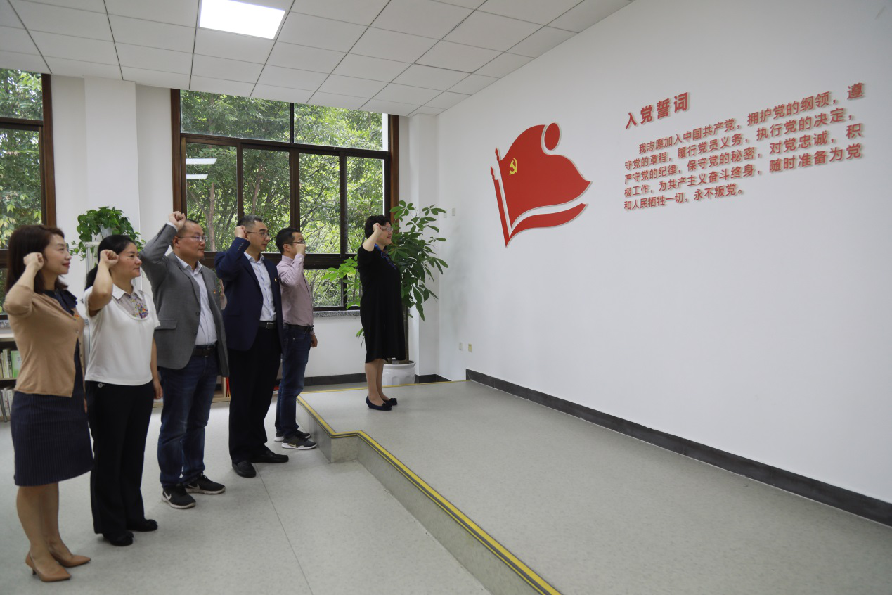 会后,在党委书记姜晓萍带领下,学院全体党员领导干部面对鲜红党旗举起右手,庄严地重温了入党誓词。