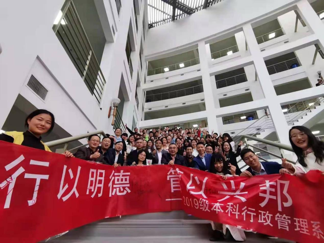 见面会结束后,全体师生在一教B楼梯上合影留念。两个小时的师生见面会,加深了师生间的相互了解,增强了同学们之间的凝聚力和向心力,同时也激励了同学们努力学习、追求卓越。“行以明德,管以兴邦”,每位行管同学都将这句话铭记在心。在行管系诸位老师的带领下,2019级行政管理专业的各位同学一定能再续辉煌,让行政管理系变得更加出色,在“国家级一流本科专业”建设的征程上不断取得新的成绩。