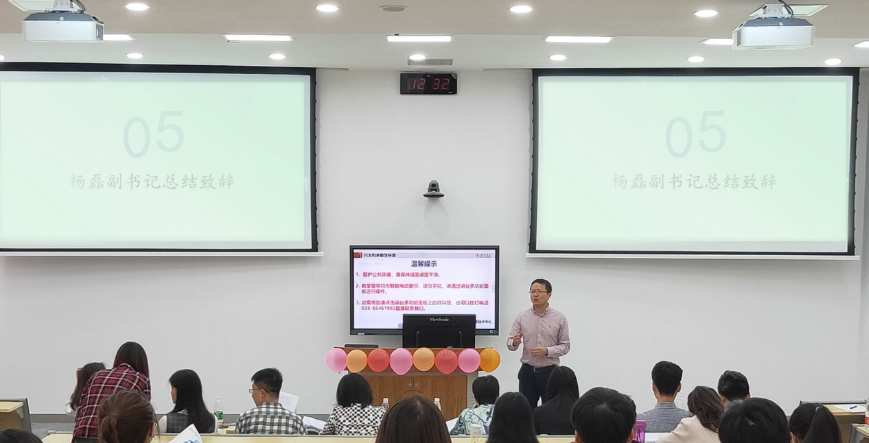 在认真聆听了所有入围团队报告后,学院党委副书记杨磊老师对同学们的表现给予了高度肯定。杨磊副书记赞扬了公管学子在社会实践中所展现出的不怕苦不怕累的大气品格,鼓励同学们在以后的学习生活中继续践行知行合一的理念,青春心向党,建功新时代,用青春和汗水为祖国母亲献礼,用激情和奋进开展更多脚踏实地、顶天立地的研究。