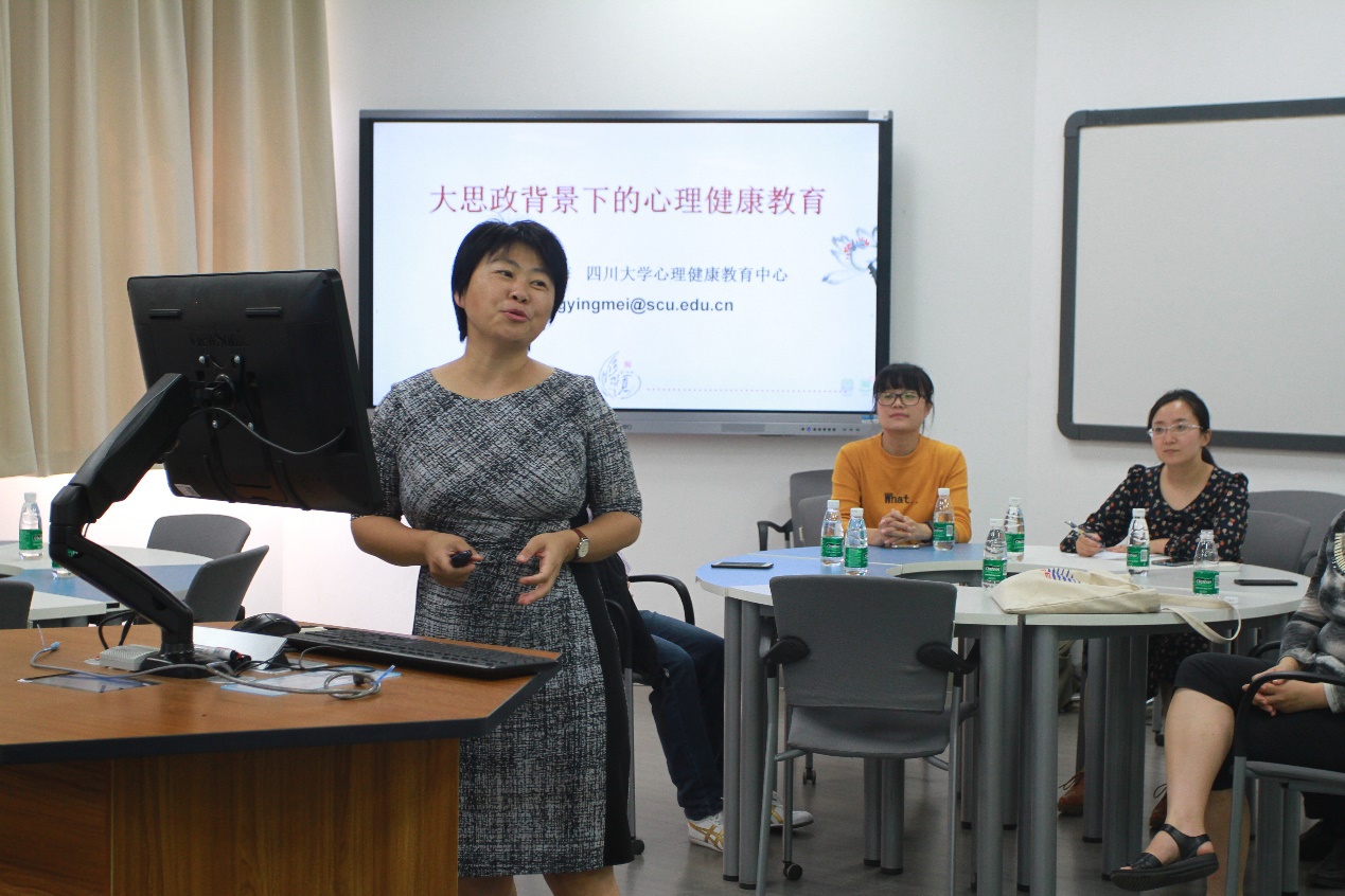 ok138cn太阳集团心理健康教育中心副主任王英梅教授作了《大思政背景下的心理健康教育》主题培训。她结合心理学专业知识、调查数据、典型案例等生动而形象地对大学生心理健康工作领域、心理健康状态、心理健康标准、精神状况等进行了深入分析,对如何发现大学生情绪与行为障碍以及作为班主任如何应对和专业化处理作了详细阐释。