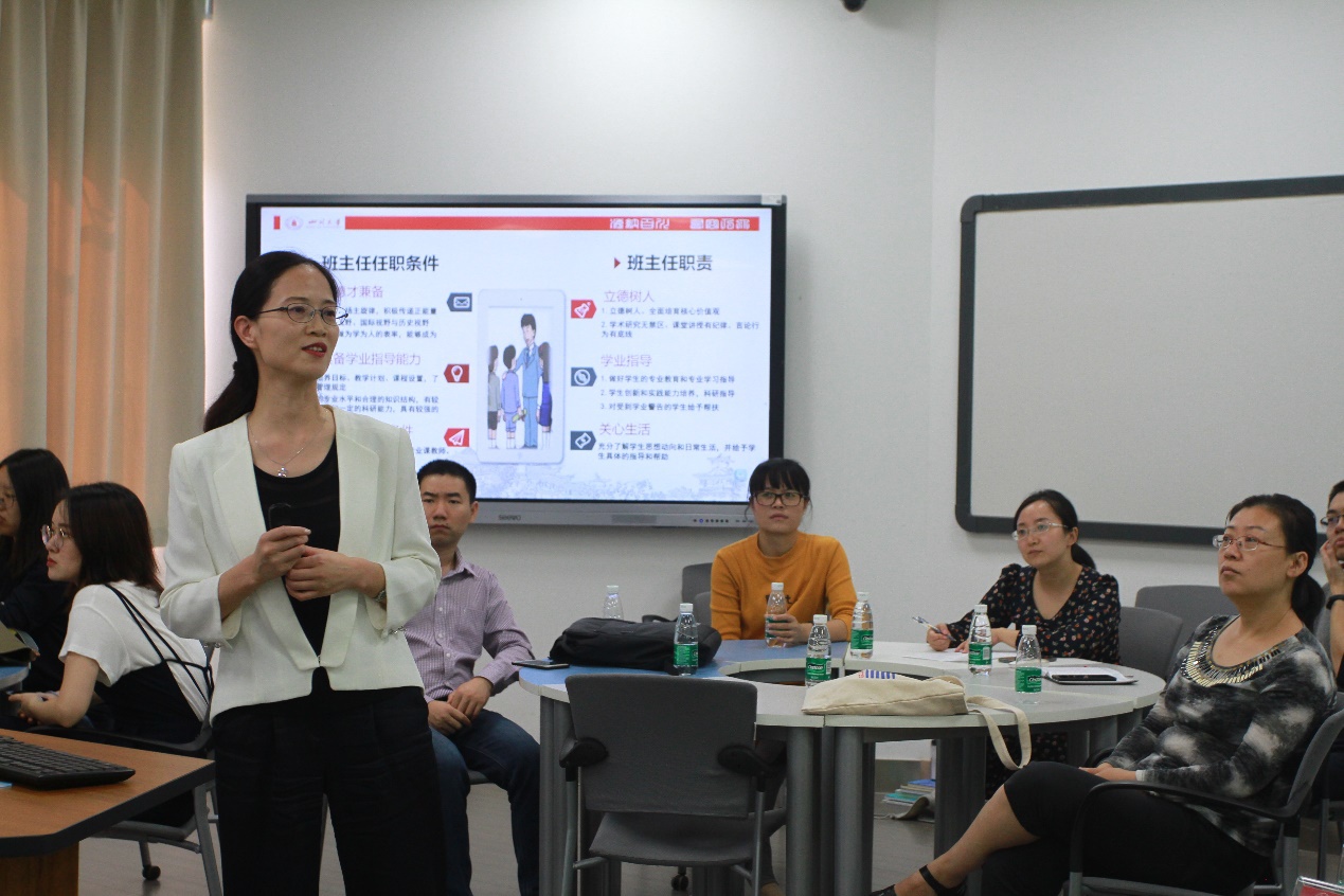 9月27日下午,由ok138cn太阳集团教务处、教师教学发展中心、法学院、建筑与环境学院、太阳集团tyc9728联合举办的ok138cn太阳集团班主任胜任力培训暨班主任经验交流会,在ok138cn太阳集团望江校区基础教学楼A304成功举行。本次会议共计40余位教师参加,我院周文泓老师作为班主任代表进行了工作经验分享。
