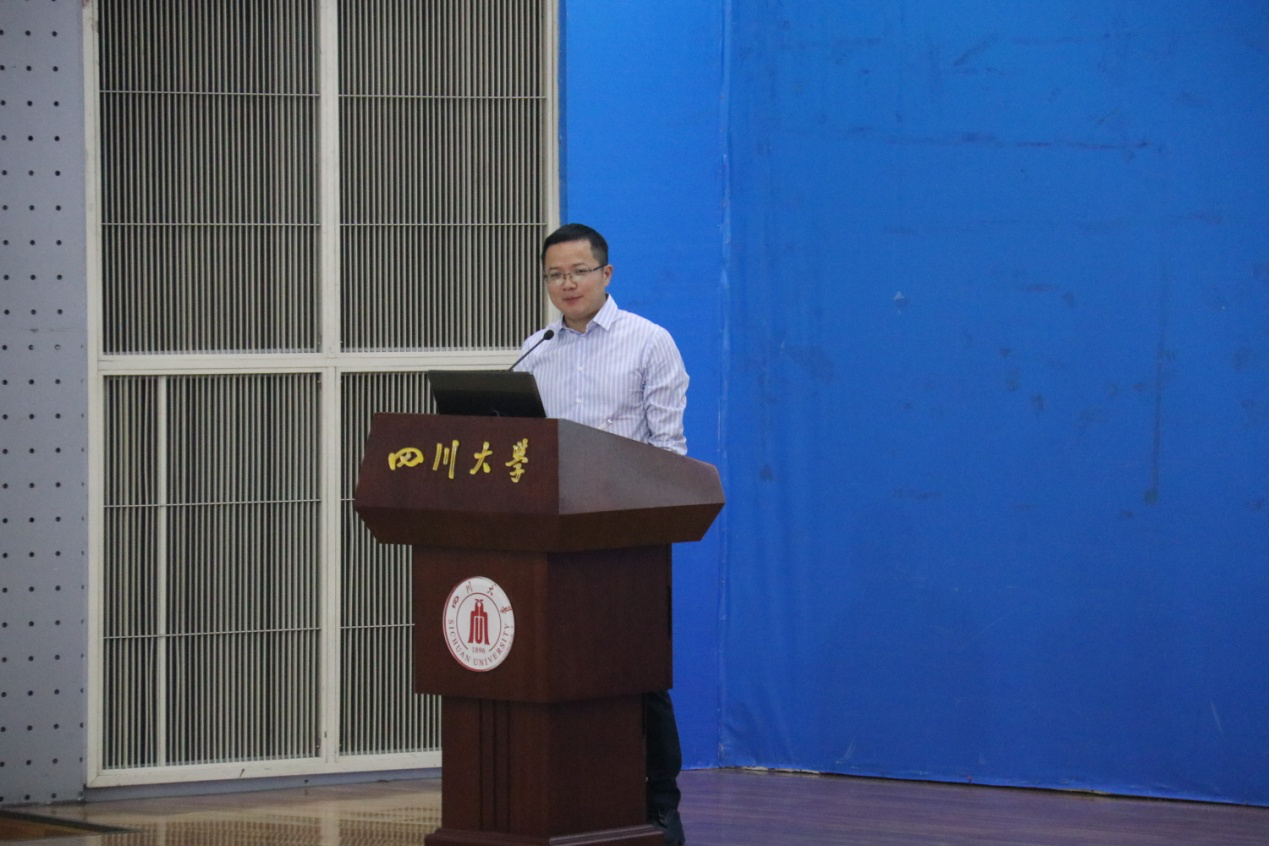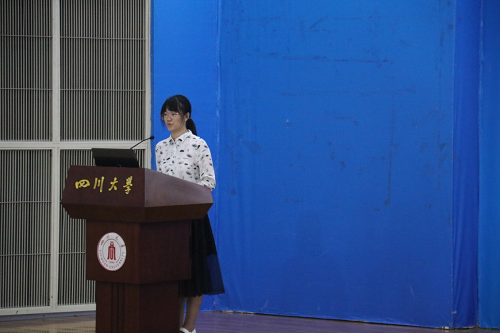 2019级信息资源管理专业的张弛弘艺同学作为新生代表,表达了成为川大人、公管人的骄傲与自豪,并代表全体新生表达对学校、学院迎新工作的精心安排及老师们的辛勤付出表达了诚挚感谢,表达了新同学对大学生活的向往与期待,并号召同学们以梦为马、鹰击长空,不负韶华!
