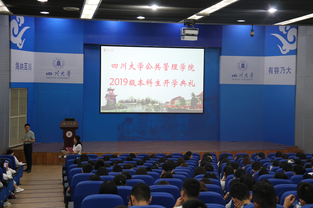 早上9:00,开学典礼在庄严的国歌中拉开了帷幕。党委书记姜晓萍教授发表了热情洋溢的欢迎致辞,姜书记以“朋友圈”为引子,从“我在”“我思”“我行”三个方面提出对同学们的期待:以培养“大德”“大智”“大才”增进大学文化认知和大学精神认同,提升自我存在感;以“四个可以”和“四个不可以”仰望星空,聆听思想的声音,守望学术的麦田;以超越的勇气和勇攀高峰的坚持成就“会当凌绝顶,一览众山小”的梦想。最后,寄语新生,新同学们的成长决定着公管、川大、中国和世界的未来。