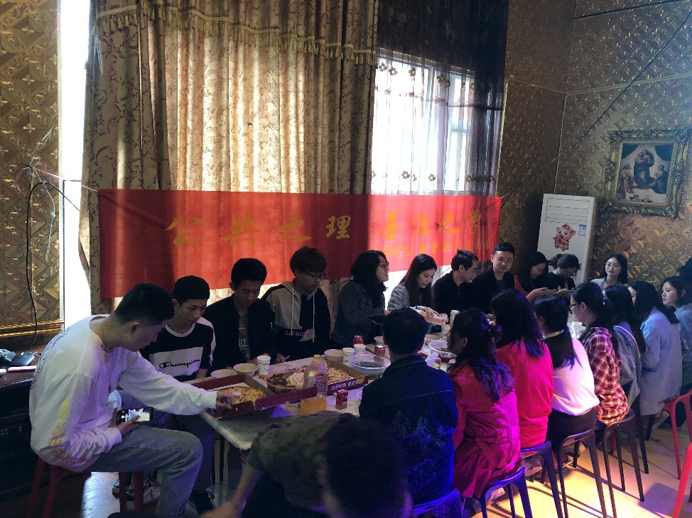 餐后,大家在门口合照,之后一同展开了一系列的娱乐活动,大家还共同合唱了歌曲。在欢聚玩乐之时,2017级公事管系班长代表全班同学,将润喉糖与几支康乃馨送予老师,这代表了同学们对老师的祝福。