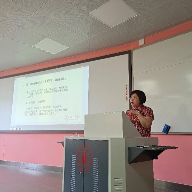 从学习贯彻习近平总书记全国教育大会重要讲话精神引入,兰利琼教授强调了“教育回归本位,教师作为领路人”的重要性。她解读了《ok138cn太阳集团班主任工作指导意见(试行)》,并从具备较高的专业水平、高度的责任感、与社会实践相结合、发挥老师的人格魅力、引导学生的全面健康成长等方面重点讲述了班主任工作的职责。她结合心理学相关知识,通过真实、鲜活的案例,阐述了班主任全方位引导学生成长人才、促进教育事业高水平发展的重要作用。