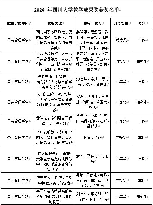 本次教学成果奖获奖团队及成果详见下表: