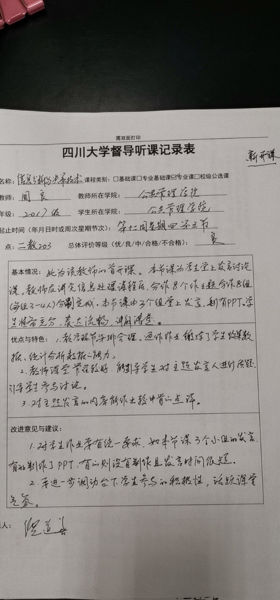 督导专家对新开课、首开课、新老师、探究式小班化、创新创业教育类课程、校外专家开课以及学生评教排名靠后的课程进行重点听课,及时反馈意见与推荐理由,有效促进本科教学质量的全面提高。