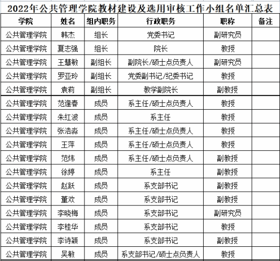 谷建岭(社工)、陈丽(档案学)、廖喜生(土管)、李晓梅(行管)、林熙(社保) |
