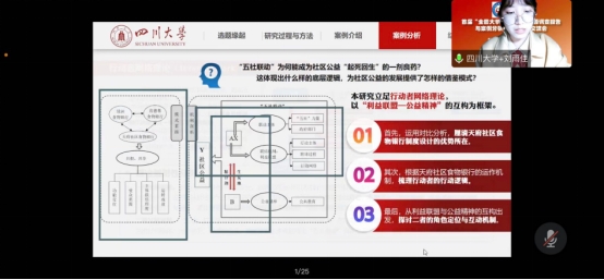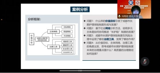由我院劳动与社会保障系沙治慧教授指导的《如何铸就失能老人幸福之路:成都市“长护险”制度发展进路和治理逻辑深描》以及由行政管理系李强彬教授指导的《“联”出余热,“益”起共担:“五社联动”以唤醒社区公益——以成都市“天府社区食物银行”为例》两部作品入选此次活动优秀案例分析报告,并于12月10日参加线上成果交流会,共论研究问题,共享研究成果。