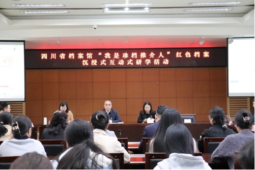 随后,四川省档案馆二级巡视员高勇、宣教处雷宇同志以及宣教处党支部书记詹雪瑜同志分别介绍了四川省档案馆去年开展的“印记100”系列活动、省档案馆在红色档案资源保护与开发方面的各项举措和对未来发展的思考和展望。此次活动中,省档案馆还发布“珍档推介人”活动规则及程序,鼓励活动参与者积极成为一名“珍档推介人”。