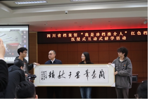 活动最后,我院师生与四川省档案馆相关老师进行了互动交流,双方还互赠了此次党团共建活动纪念品。