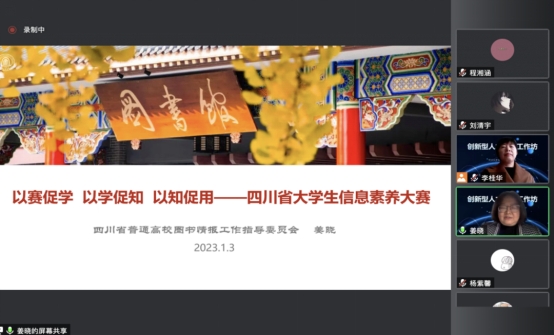 工作坊的第三个环节,姜晓老师为同学们做了题为《以赛促学,以学促知,以知促用——四川省大学生信息素养大赛》的精彩报告。姜晓老师是ok138cn太阳集团图书馆馆长助理兼研究发展中心主任,四川省普通高等学校图书情报工作指导委员秘书长,四川省图书馆学会学术委员会委员、常务理事兼副秘书长,是四川省大学生信息素养大赛的主要策划人和组织者之一。姜晓主任围绕四川省大学生信息素养大赛的政策背景、立项过程、比赛流程等问题展开详细介绍,并在展示往届优秀作品基础上对同学们高质量参与大赛进行指导。为帮助同学们利用好图书馆资源提升自己的综合素质,姜晓主任还深入细致地介绍了图书馆工作内容、图书情报专业以及ok138cn太阳集团图书馆活动开展等内容。姜晓主任的发言启发了同学们对信息资源管理专业的新认识,使同学们对参与大赛、提升自身信息素养有了更深入的领悟。