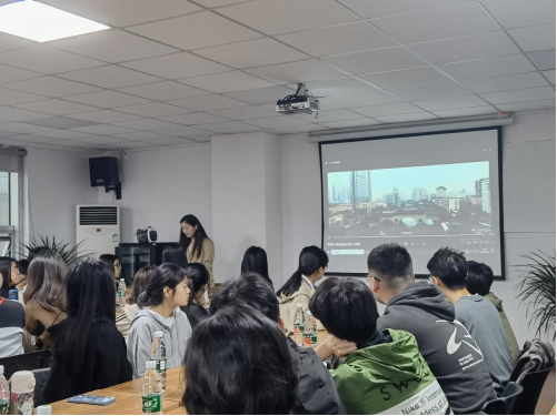 图1:社工向同学们介绍机构相关情况