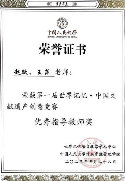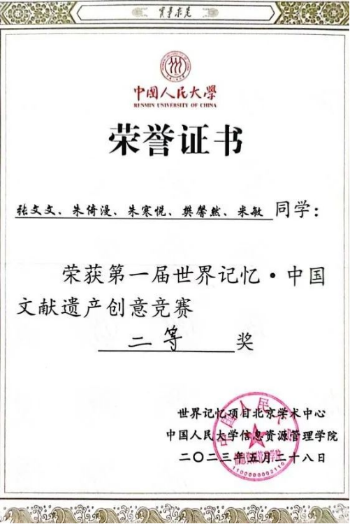 我院档案学专业本科生团队喜获“世界记忆•中国文献遗产创意竞赛”二等奖