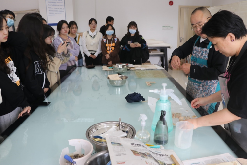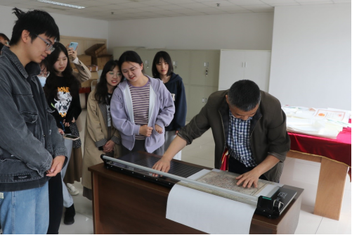 首先,成都市档案馆档案修裱室、档案仿真复制室的老师们先后为同学们详细讲解了档案修裱、档案仿真复制涉及的相关知识、修复工具、设备、方法、技巧和注意事项,并进行了修裱和仿真复制全过程地演示。
