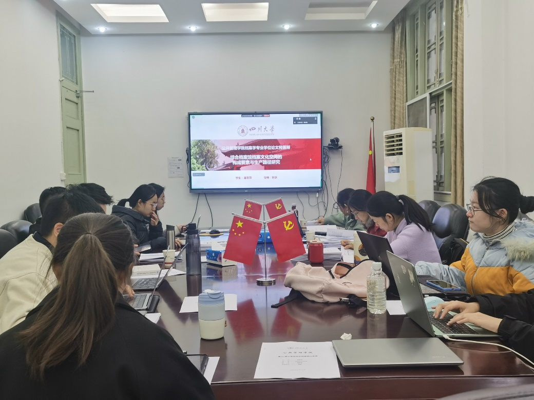 1月10日下午,我院2022级档案学专业硕士研究生毕业论文预答辩在萃文楼220会议室举行。秘书档案学系王萍教授、史江教授、蔡娜副教授、赵跃副研究员以及王阿陶副研究员共同担任此次预答辩的评议专家,为同学们的论文提供宝贵的指导和建议。2022级档案学专业硕士研究生依序进行预答辩,部分2023级与2024级研究生到场旁听,观摩学习并汲取经验。