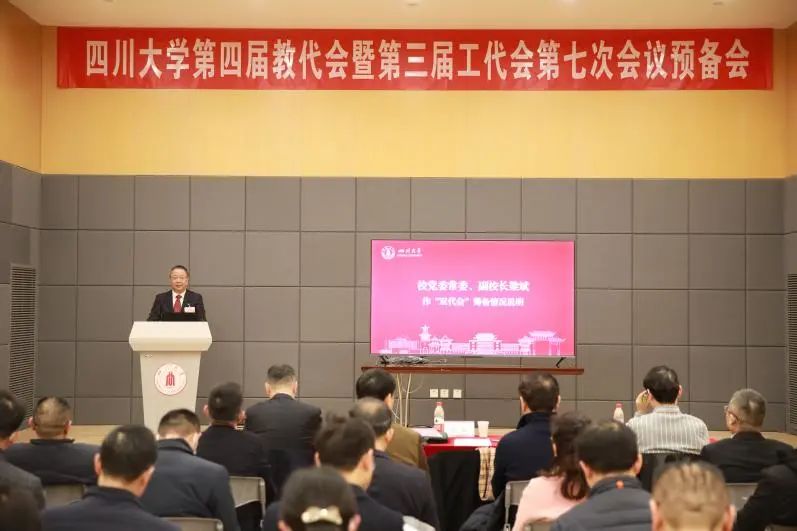 217日,学校在望江校区召开第四届教代会暨第三届工代会第七次会议。校党委书记甘霖、校长李言荣等全体校领导,老领导卢铁城、林理彬、鄢国森和新近离任的校领导,王琪院士,杰出教授钟本和、詹石窗、徐玖平、左卫民,校两委委员,全体中层干部,各民主党派和统战团体负责人,市以上人大代表政协委员,学校双代会正式代表等参加会议。会议由副校长梁斌主持。