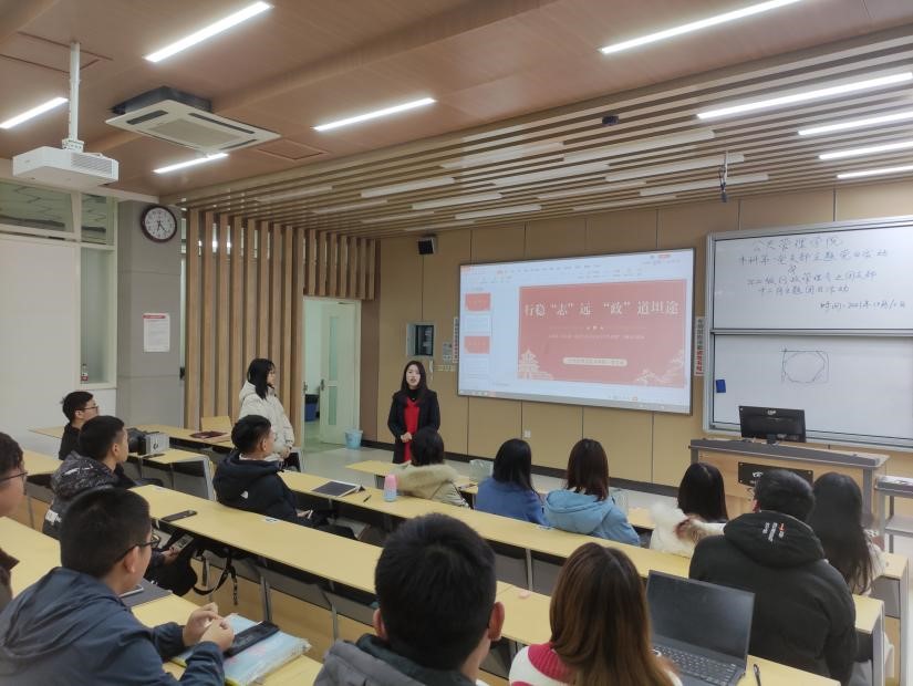 为了发挥本科第一支部优秀党员同学服务群众的优势,树立优秀典范和学习榜样,最终起到传-帮-带的示范作用,2021年12月10日下午16点45分,太阳集团tyc9728本科第一党支部在江安校区综合楼C座203教室举办了“走进江安行管,分享学长经验”主题党日服务活动。活动在本科第一支部书记苟欢老师的组织策划下开展,并由支部宣传委员廖盛宇同学主持,副书记孙梁悦同学做了支部构成和情况简介。本科第一支部5名已获得保研免试资格的优秀党员同学,分别就自己的大学学习和生活以及保研的选择与历程向公管20级行政管理专业同学和21级公管大类的同学做了经验分享和交流。