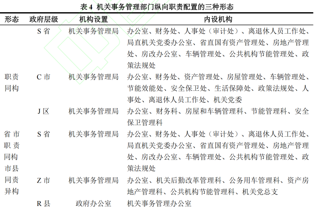 各级机关事务管理部门的职责范围具有一致性,不管选择何种机构设置模式,都以履行基本职责为最低限度,而这也是机构“混构”得以存续的功能基础。